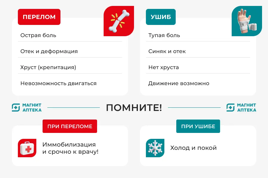 Как отличить перелом от ушиба по симптомам и что делать после травмы