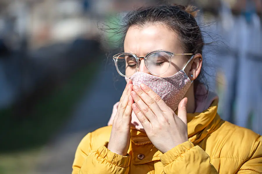 Носите маску или респиратор, особенно в ветреную погоду, и защитные очки. Перед выходом нанесите вокруг ноздрей тонкий слой нейтрального жирного крема или барьерный спрей – это снизит вероятность попадания пыльцы в организм.