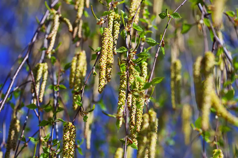 Берёза, ольха, орешник, дуб начинают «цвести» – выбрасывать пыльцу – с апреля по конец мая. Особенно ярко проявляется аллергия на цветение берёзы. Воздушные потоки разносят частицы на большие расстояния, поэтому симптомы возникают даже у людей, живущих вдали от рощ.