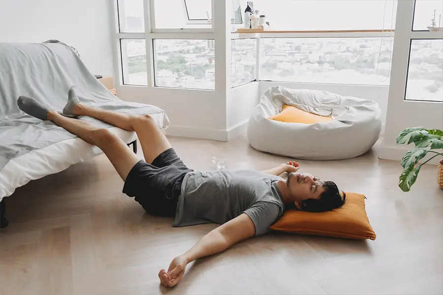 - Горизонтальное положение с поднятыми ногами. Лягте и приподнимите ноги на высоту подушки – кровь быстрее вернётся к сердцу и мозгу.