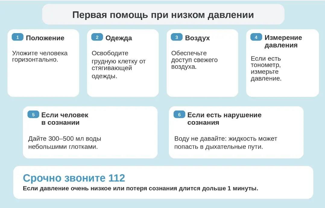 Памятка первой помощи при низком давлении